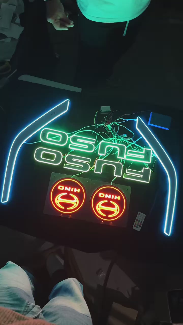 大きなFUSOイルミネーションレタリング+三菱ロゴ